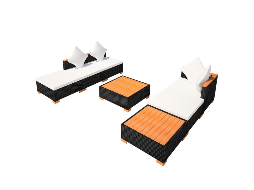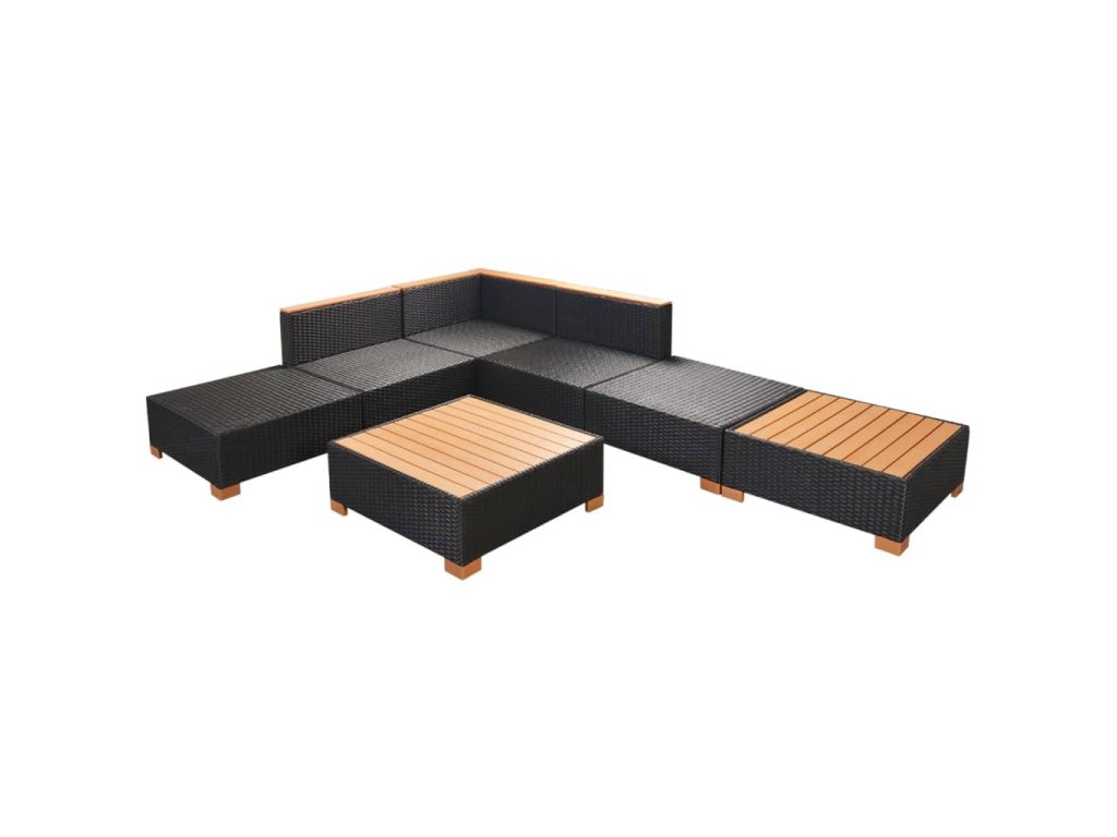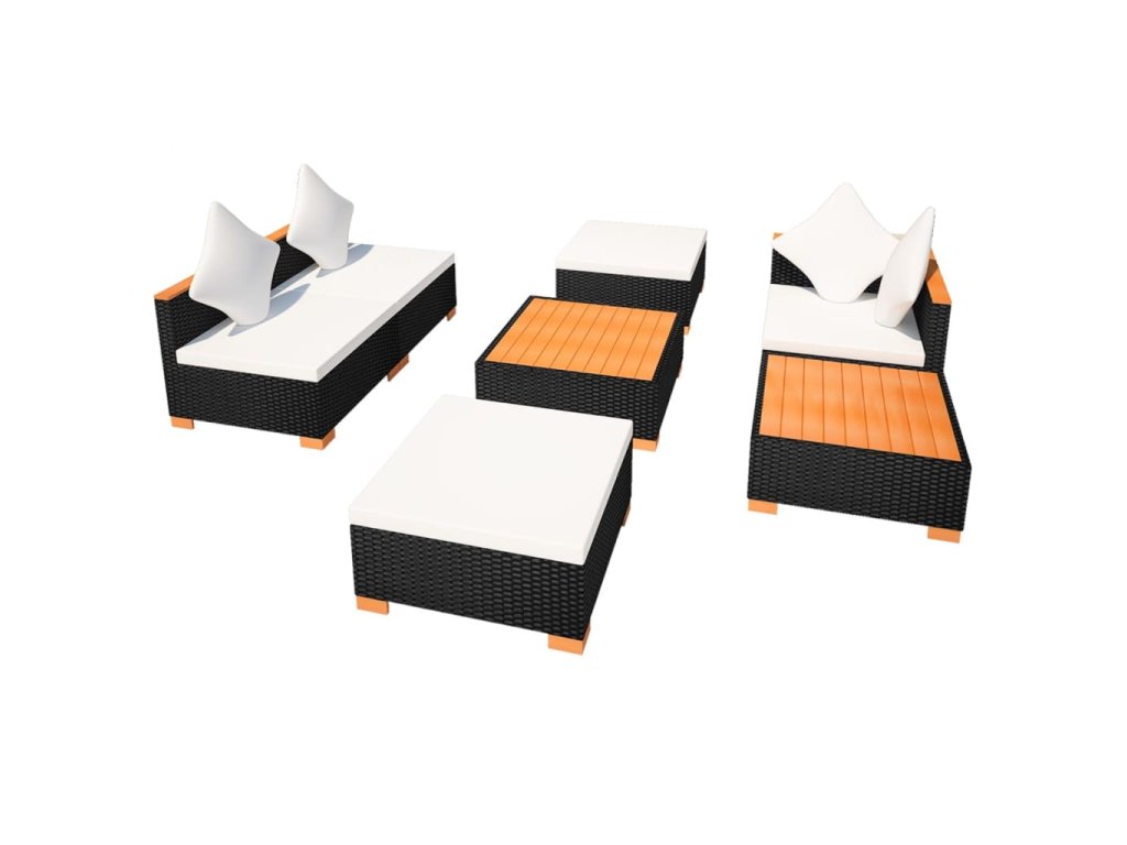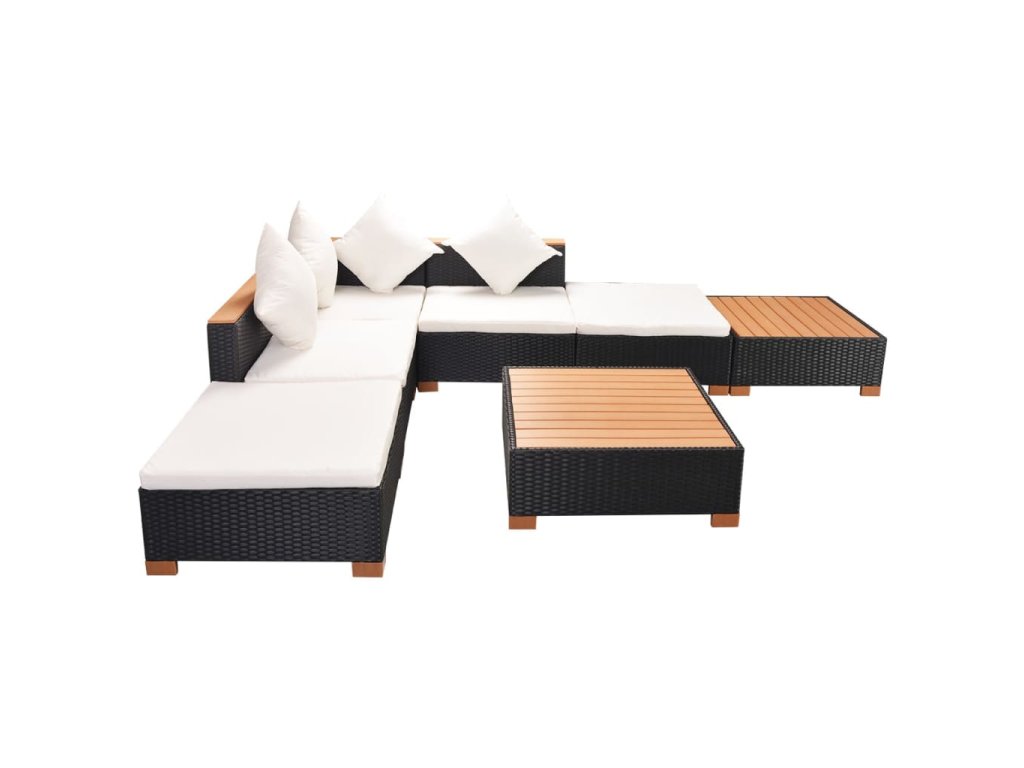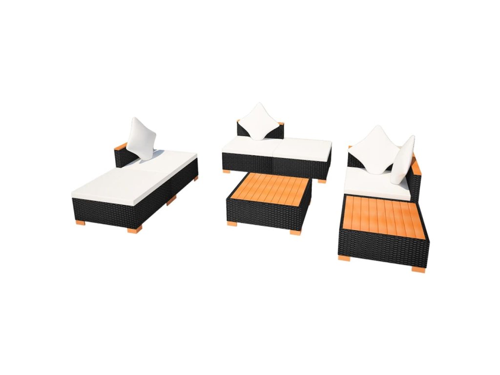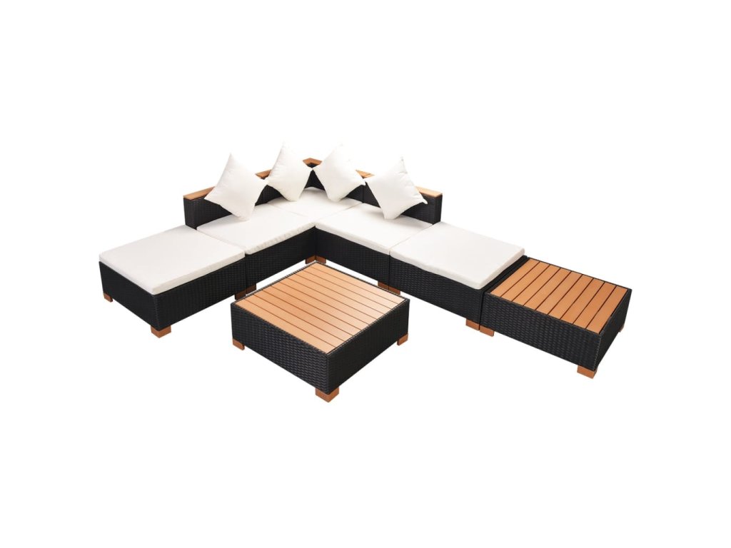 7dílná zahradní sedací souprava s poduškami polyratan černá 42757