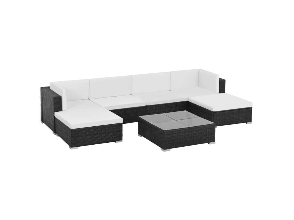 7dílná zahradní sedací souprava s poduškami polyratan černá 44596