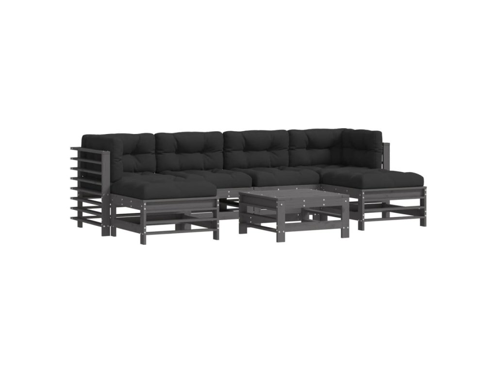 7dílná zahradní sedací souprava s poduškami šedá masivní dřevo 3185950