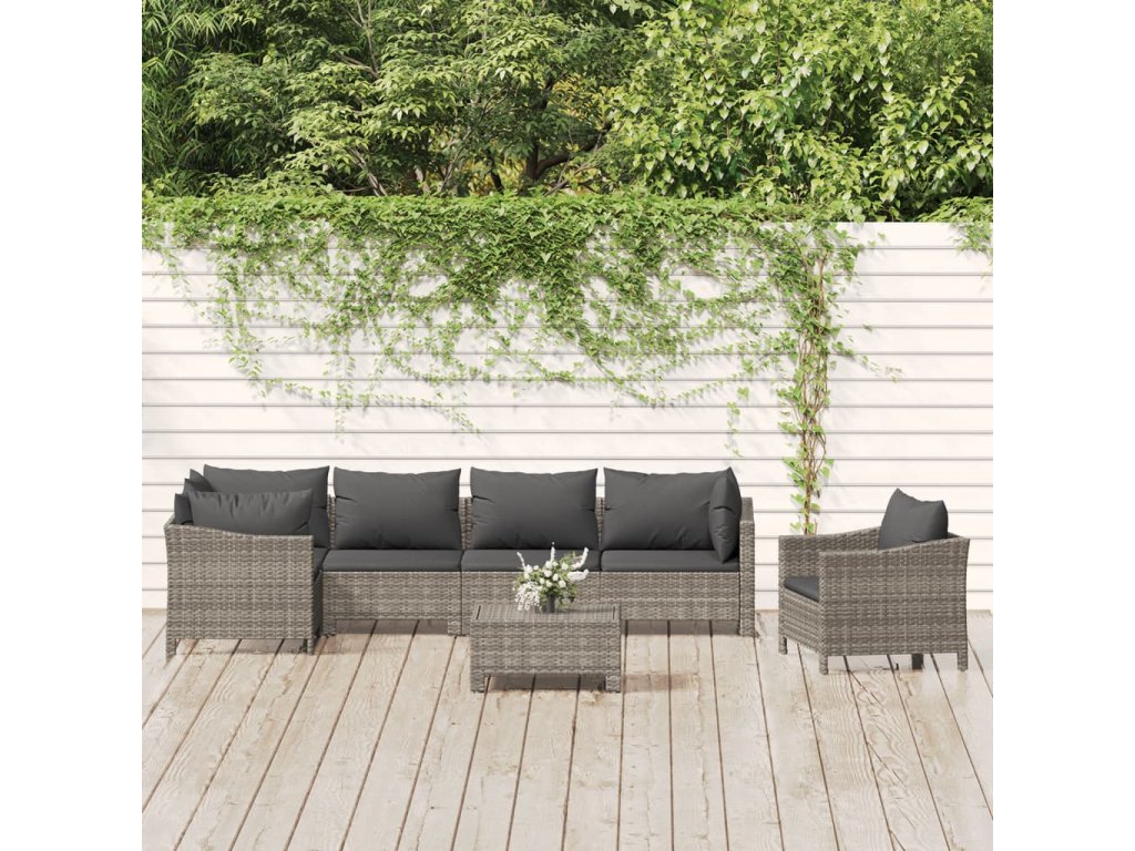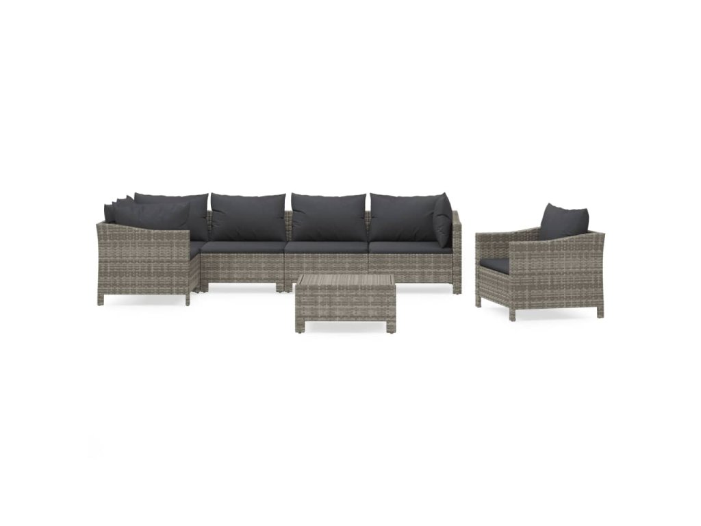 7dílná zahradní sedací souprava s poduškami šedá polyratan 3187283