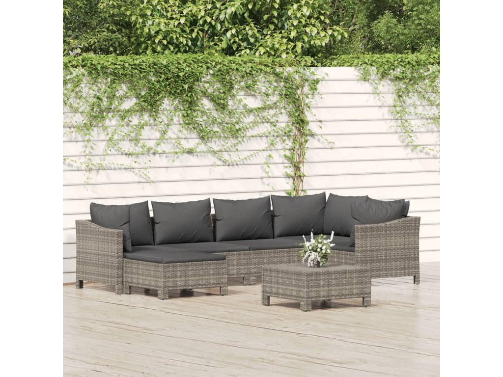 7dílná zahradní sedací souprava s poduškami šedá polyratan 3187292