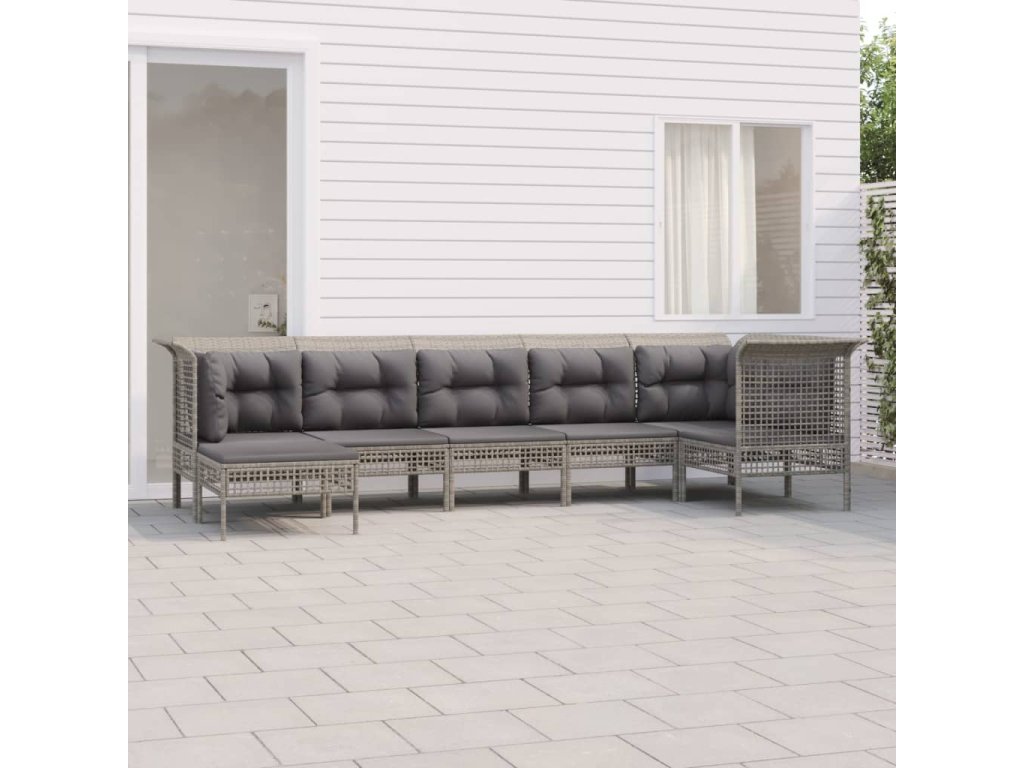 7dílná zahradní sedací souprava s poduškami šedá polyratan 3187550