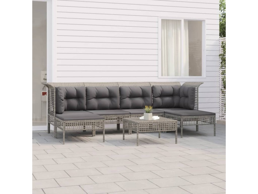 7dílná zahradní sedací souprava s poduškami šedá polyratan 3187553