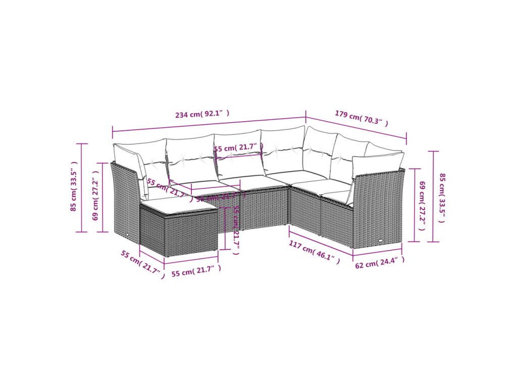 7dílná zahradní sedací souprava s poduškami šedá polyratan 3217990