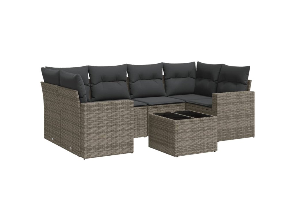 7dílná zahradní sedací souprava s poduškami šedá polyratan 3218710