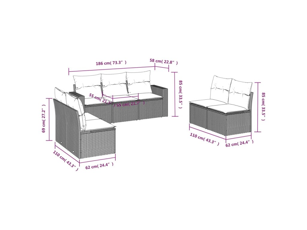 7dílná zahradní sedací souprava s poduškami šedá polyratan 3218820