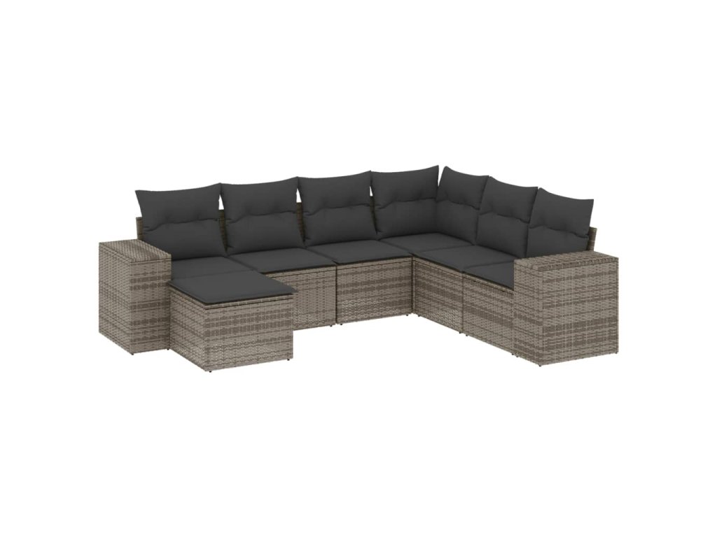 7dílná zahradní sedací souprava s poduškami šedá polyratan 3222899