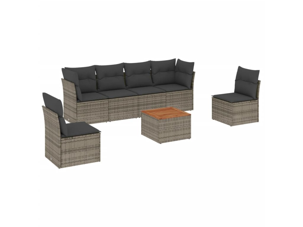 7dílná zahradní sedací souprava s poduškami šedá polyratan 3223554