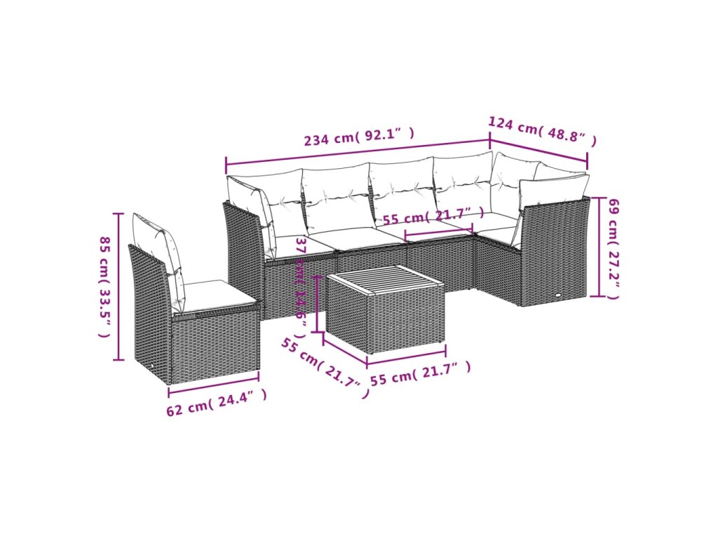 Tato zahradní sedací souprava je dokonalým doplňkem vaší zahrady, terasy nebo dvorku a poskytne vám pohodlné a příjemné místo, kde si můžete povídat s rodinou a přáteli nebo jen tak odpočívat a užívat si pobyt venku.