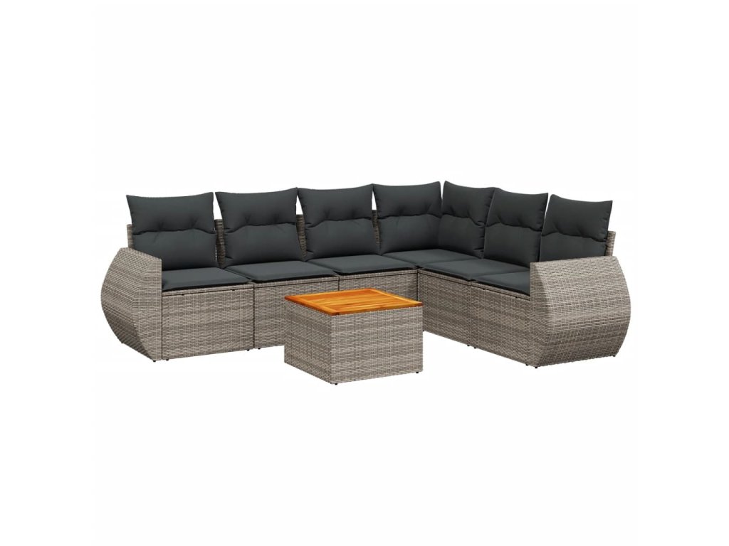7dílná zahradní sedací souprava s poduškami šedá polyratan 3225024