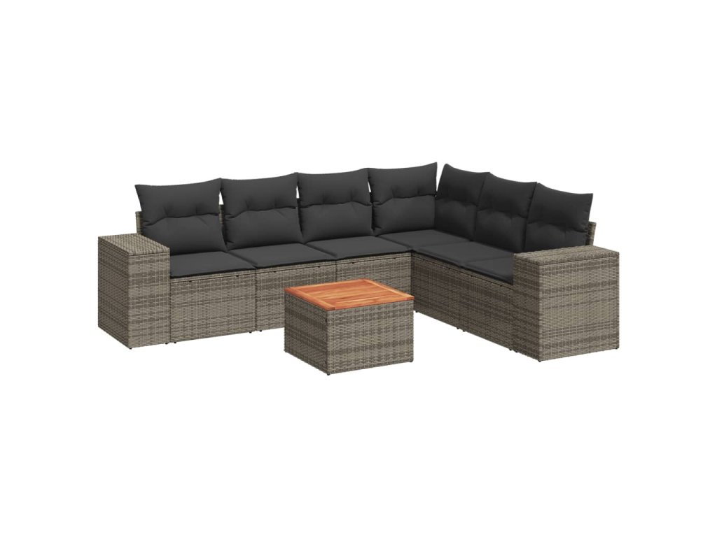 7dílná zahradní sedací souprava s poduškami šedá polyratan 3225465