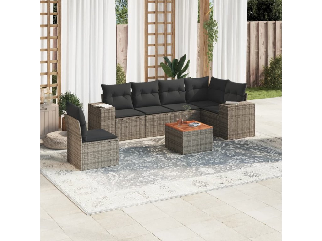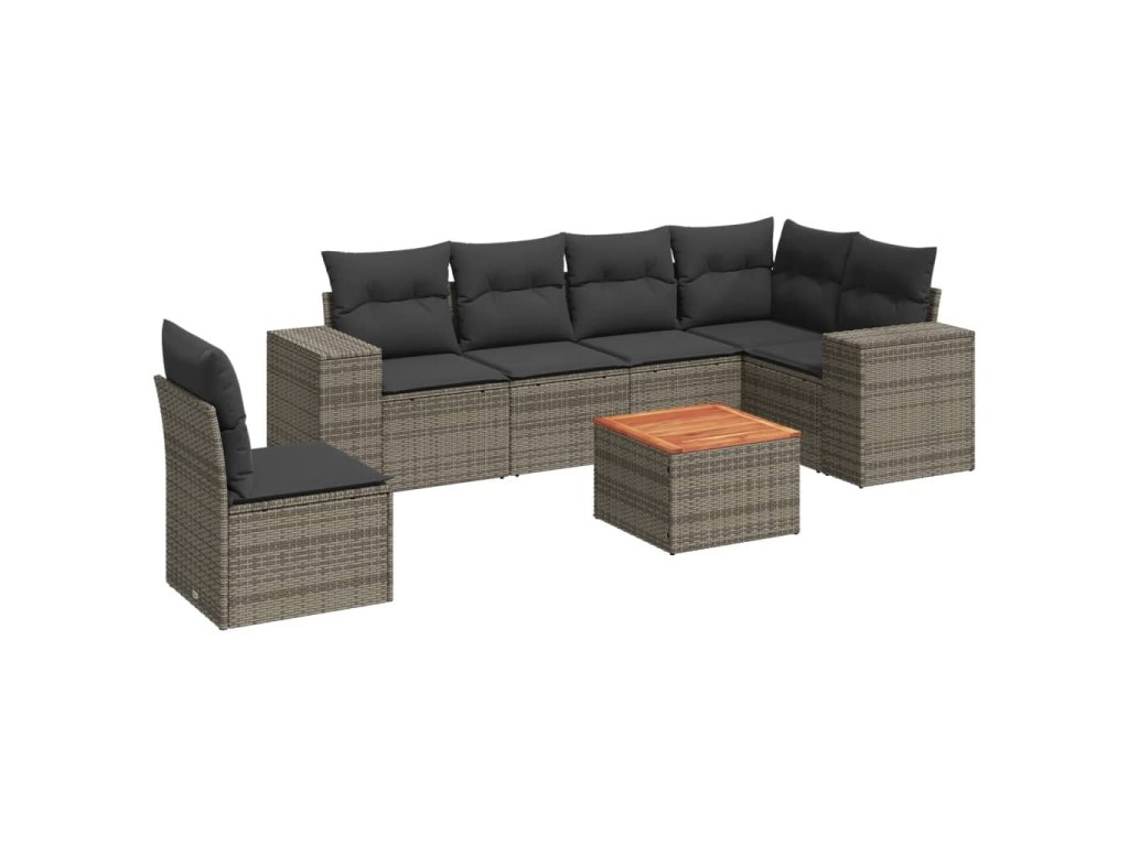 7dílná zahradní sedací souprava s poduškami šedá polyratan 3225472