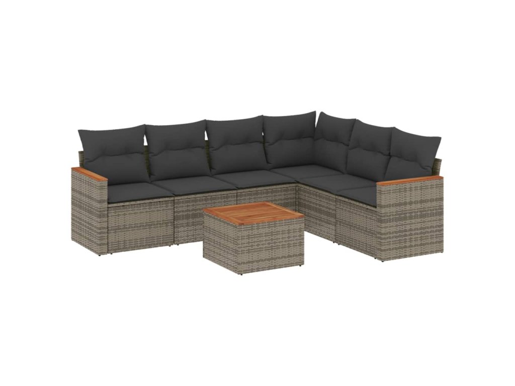 7dílná zahradní sedací souprava s poduškami šedá polyratan 3226011