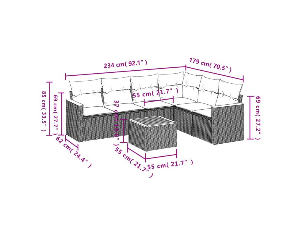 Tato zahradní sedací souprava je dokonalým doplňkem vaší zahrady, terasy nebo dvorku a poskytne vám pohodlné a příjemné místo, kde si můžete povídat s rodinou a přáteli nebo jen tak odpočívat a užívat si pobyt venku.
