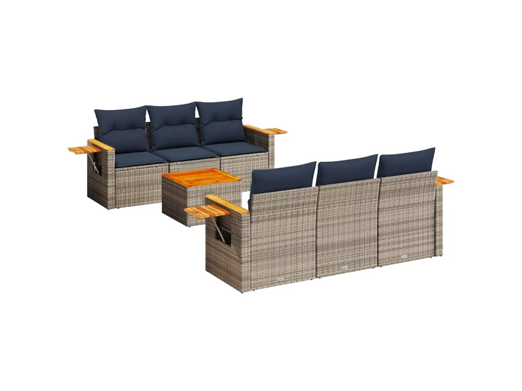7dílná zahradní sedací souprava s poduškami šedá polyratan 3226635