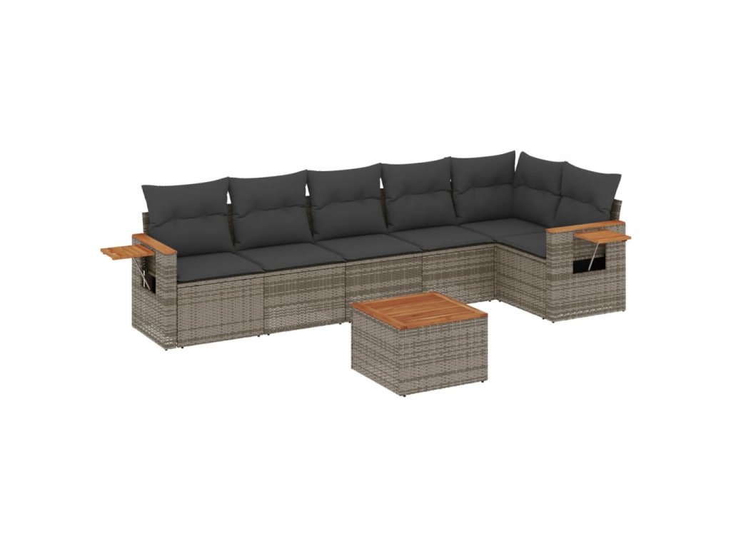 7dílná zahradní sedací souprava s poduškami šedá polyratan 3226837