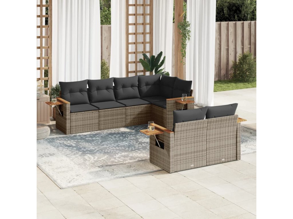 7dílná zahradní sedací souprava s poduškami šedá polyratan 3226984