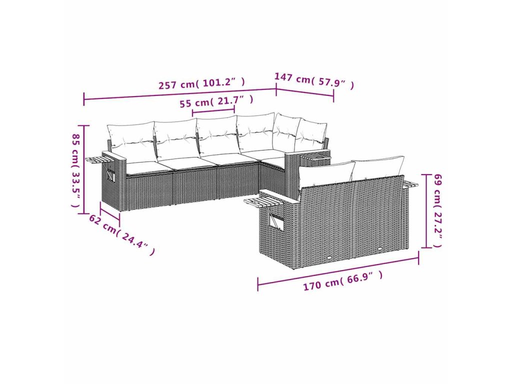 Tato zahradní sedací souprava je dokonalým doplňkem vaší zahrady, terasy nebo dvorku a poskytne vám pohodlné a příjemné místo, kde si můžete povídat s rodinou a přáteli nebo jen tak odpočívat a užívat si pobyt venku.