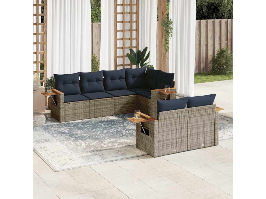 7dílná zahradní sedací souprava s poduškami šedá polyratan 3226985