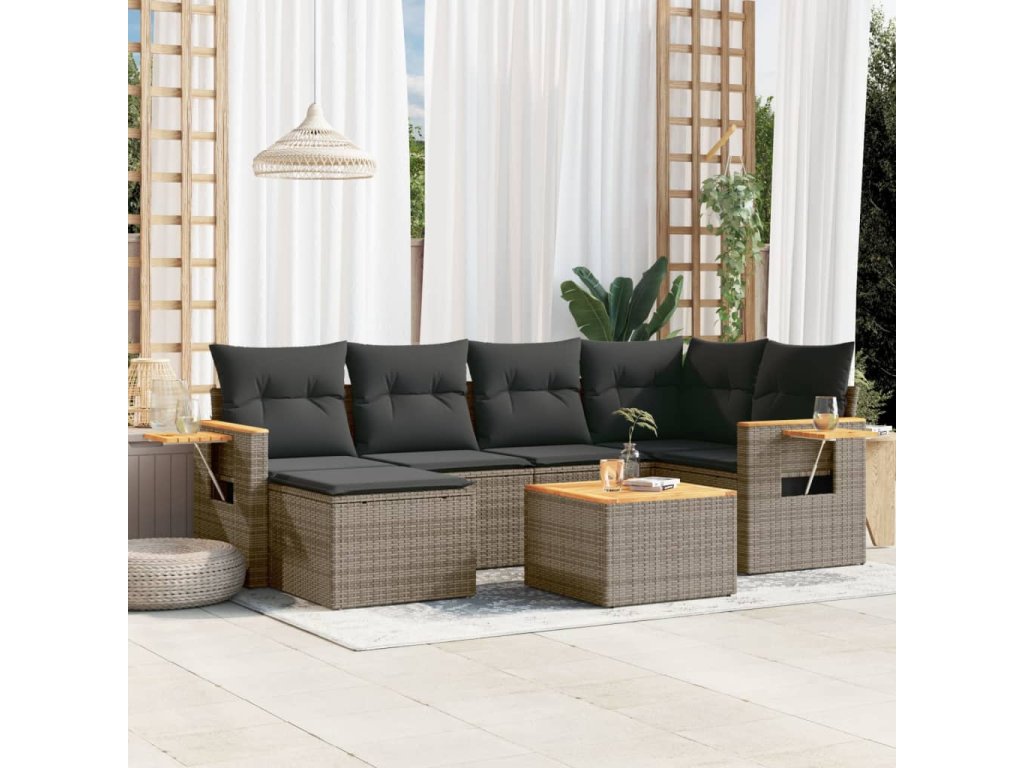 7dílná zahradní sedací souprava s poduškami šedá polyratan 3227026