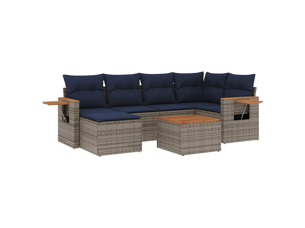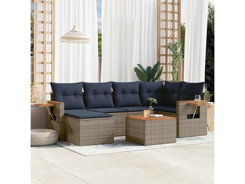 7dílná zahradní sedací souprava s poduškami šedá polyratan 3227027
