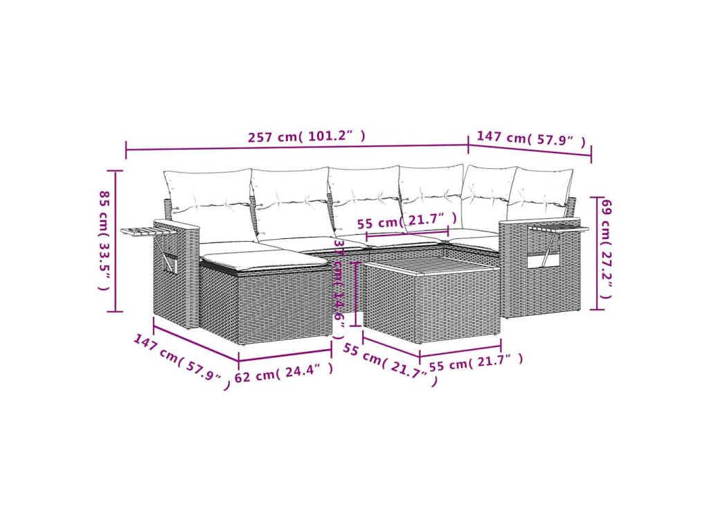 Tato zahradní sedací souprava je dokonalým doplňkem vaší zahrady, terasy nebo dvorku a poskytne vám pohodlné a příjemné místo, kde si můžete povídat s rodinou a přáteli nebo jen tak odpočívat a užívat si pobyt venku.