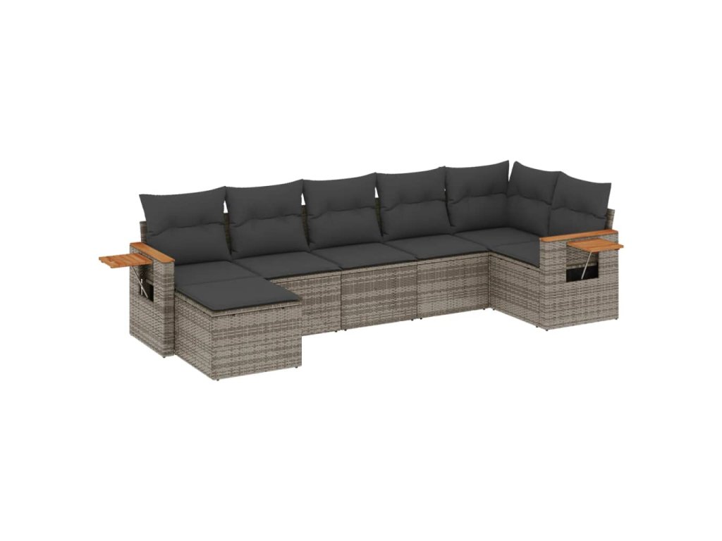 7dílná zahradní sedací souprava s poduškami šedá polyratan 3227033