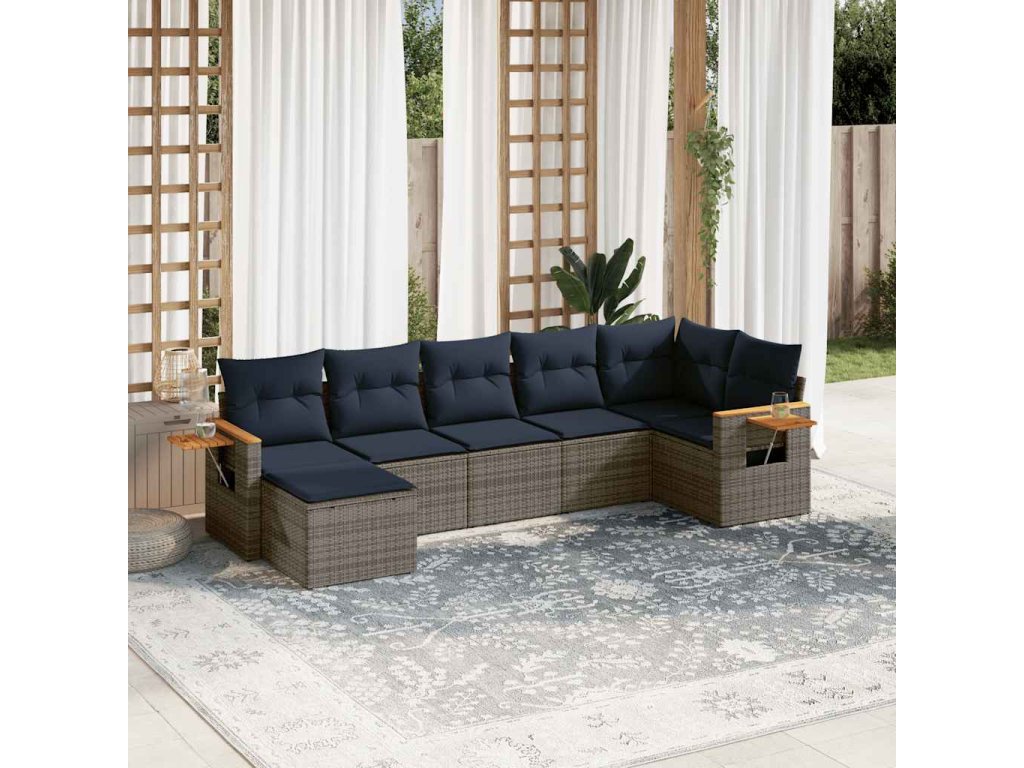 7dílná zahradní sedací souprava s poduškami šedá polyratan 3227034