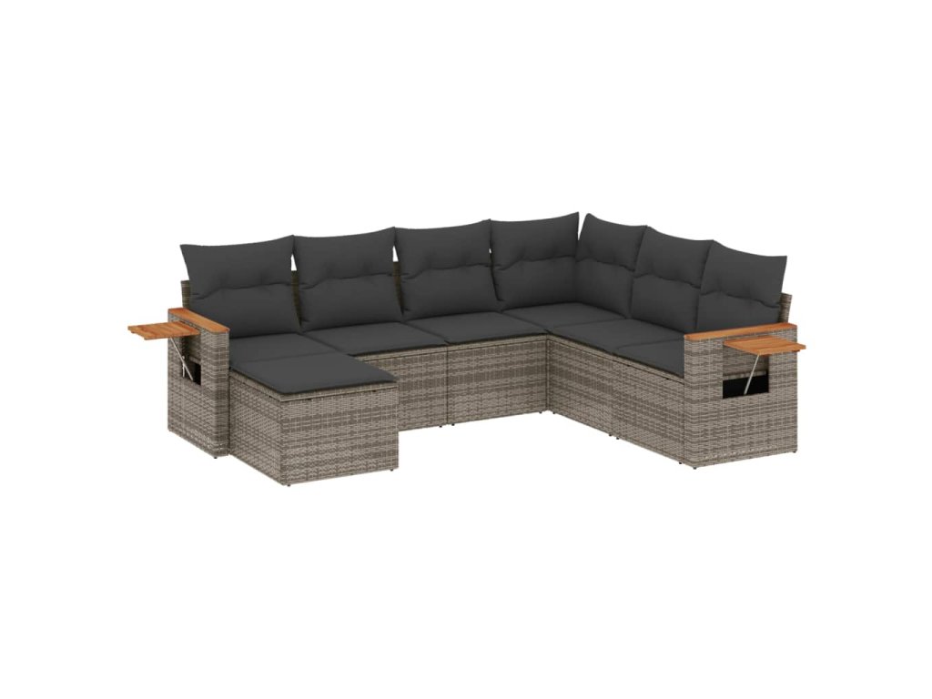 7dílná zahradní sedací souprava s poduškami šedá polyratan 3227047
