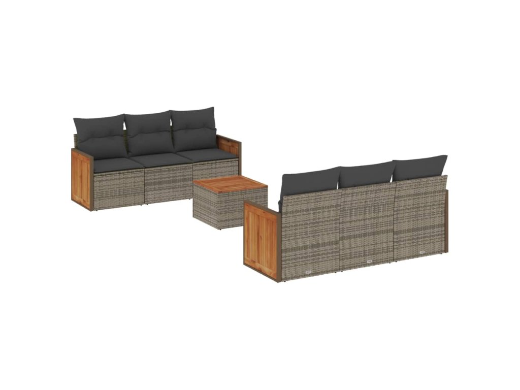 7dílná zahradní sedací souprava s poduškami šedá polyratan 3227474