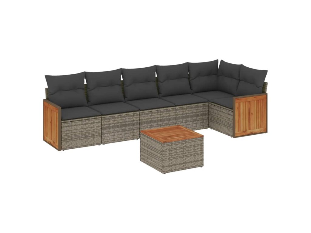 7dílná zahradní sedací souprava s poduškami šedá polyratan 3227677