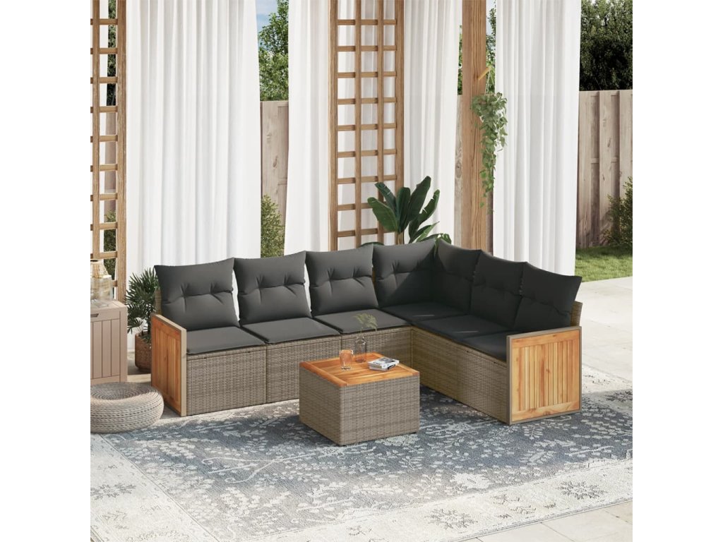 7dílná zahradní sedací souprava s poduškami šedá polyratan 3227691