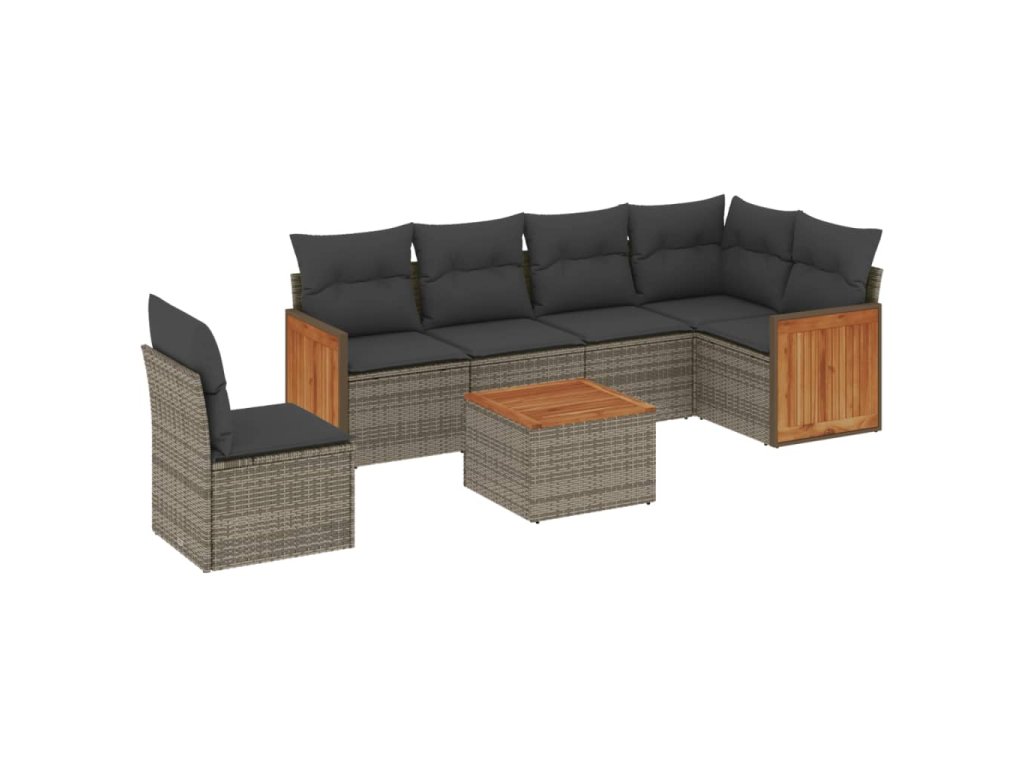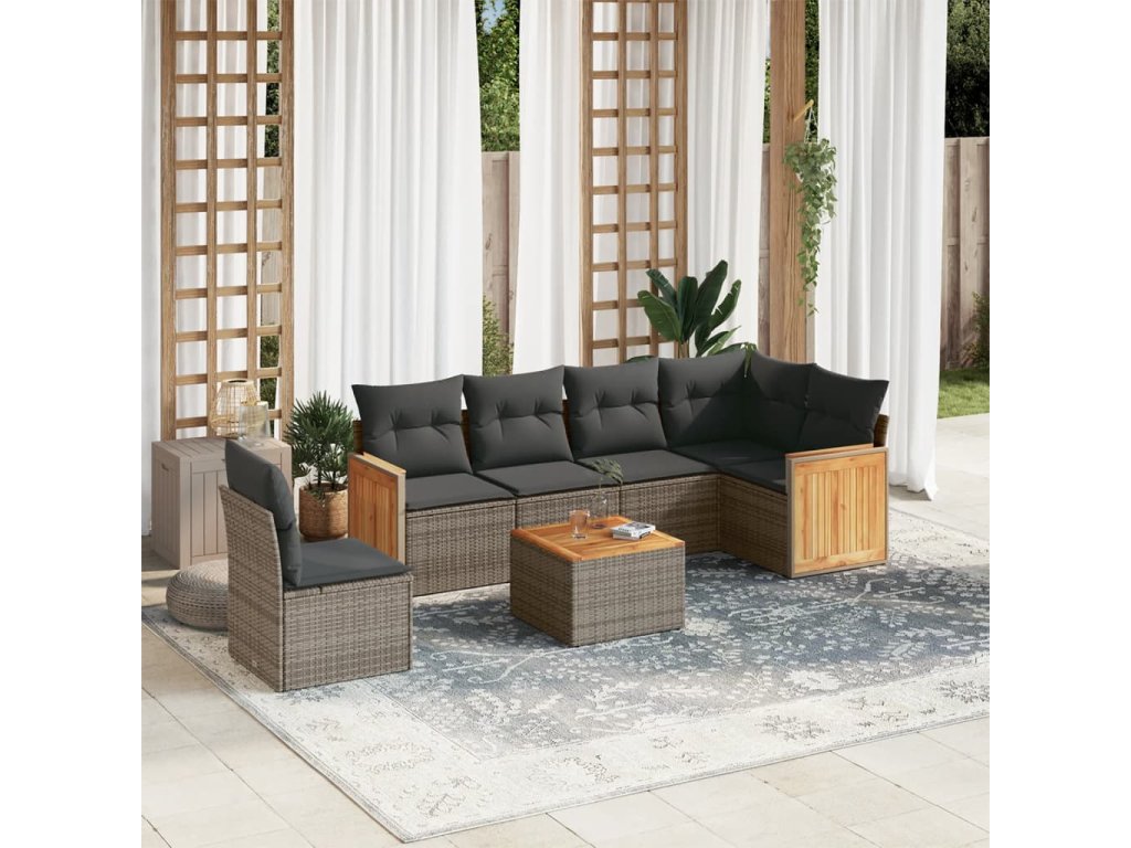7dílná zahradní sedací souprava s poduškami šedá polyratan 3227705