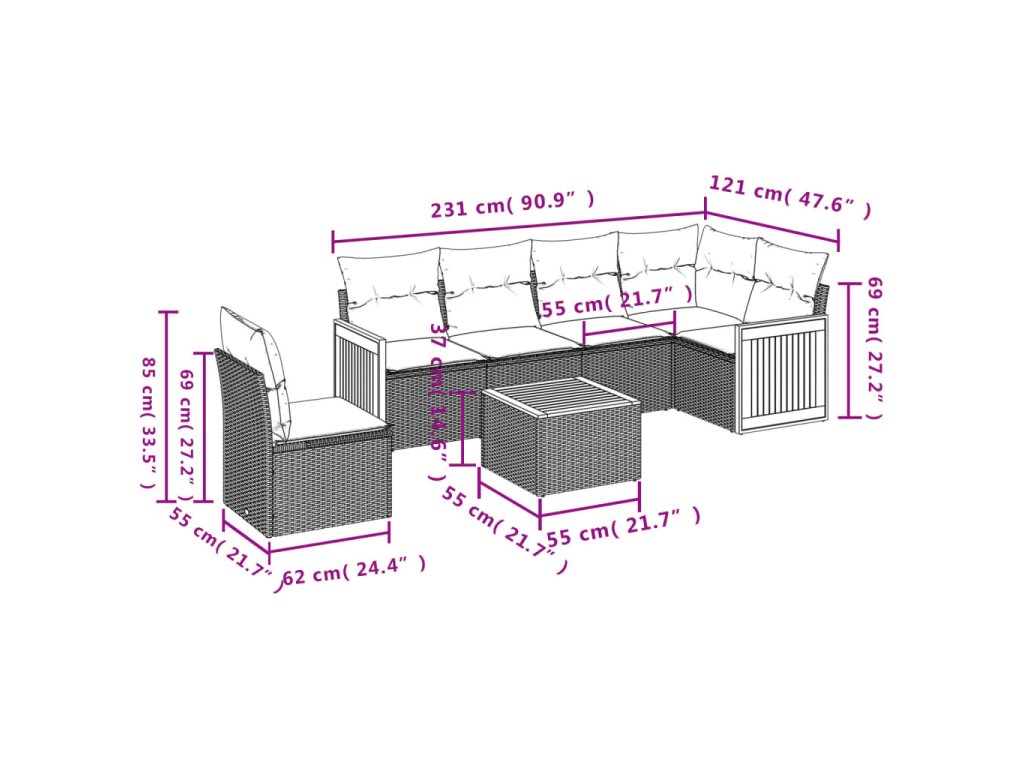 Tato zahradní sedací souprava je dokonalým doplňkem vaší zahrady, terasy nebo dvorku a poskytne vám pohodlné a příjemné místo, kde si můžete povídat s rodinou a přáteli nebo jen tak odpočívat a užívat si pobyt venku.