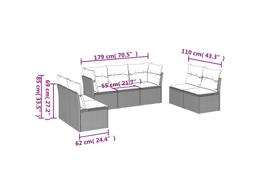 7dílná zahradní sedací souprava s poduškami šedá polyratan 3249249