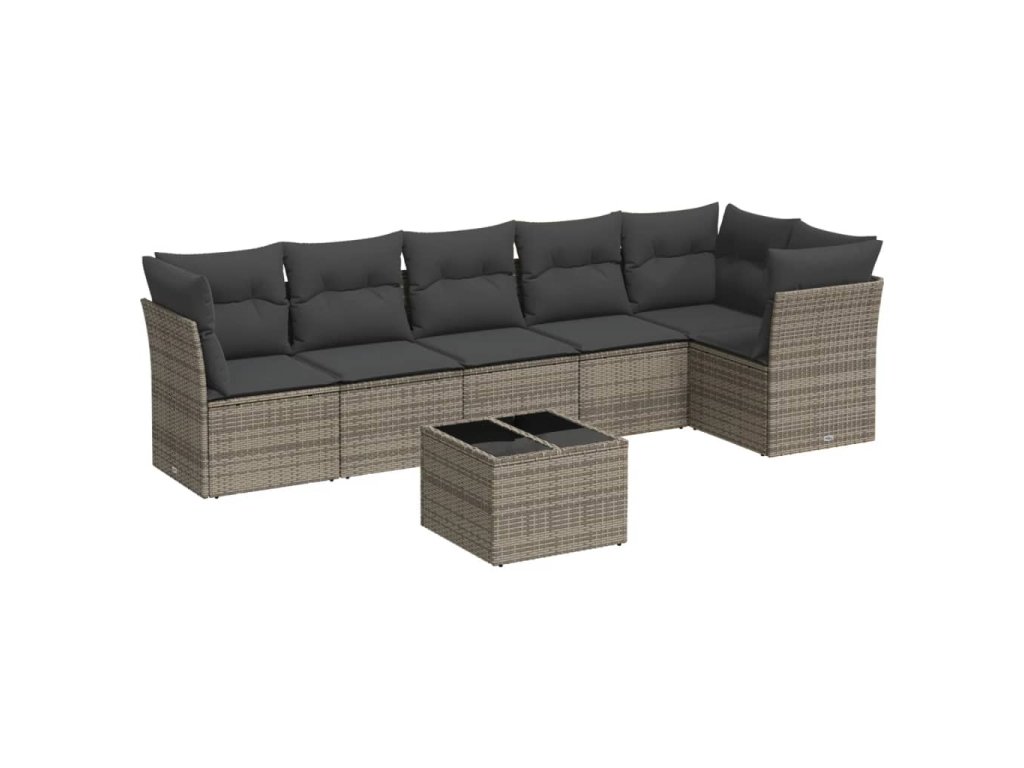 7dílná zahradní sedací souprava s poduškami šedá polyratan 3249509