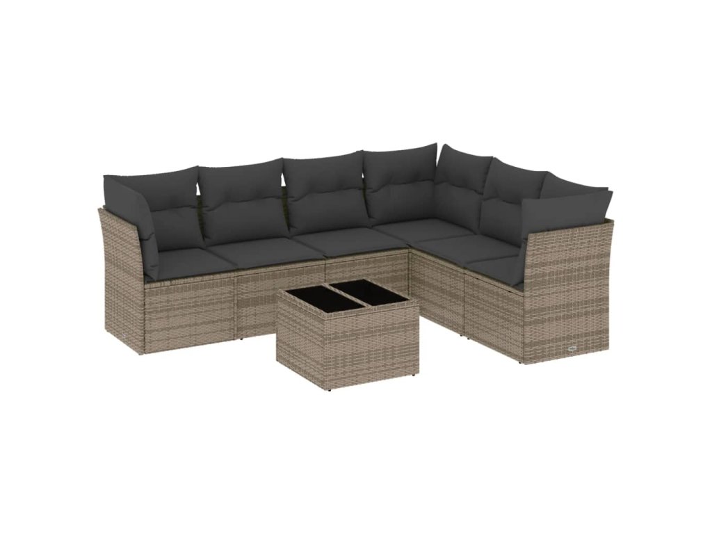 7dílná zahradní sedací souprava s poduškami šedá polyratan 3249529