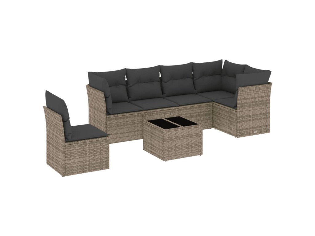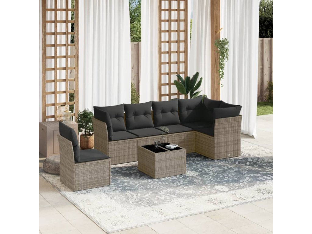 7dílná zahradní sedací souprava s poduškami šedá polyratan 3249549
