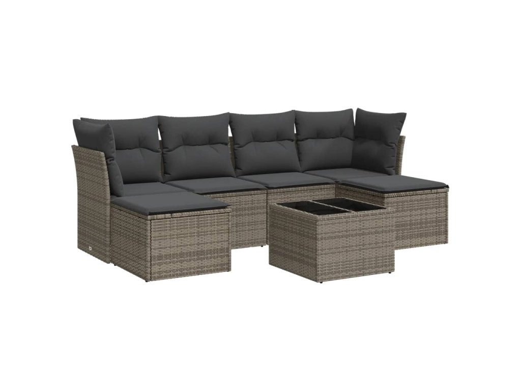 7dílná zahradní sedací souprava s poduškami šedá polyratan 3249859