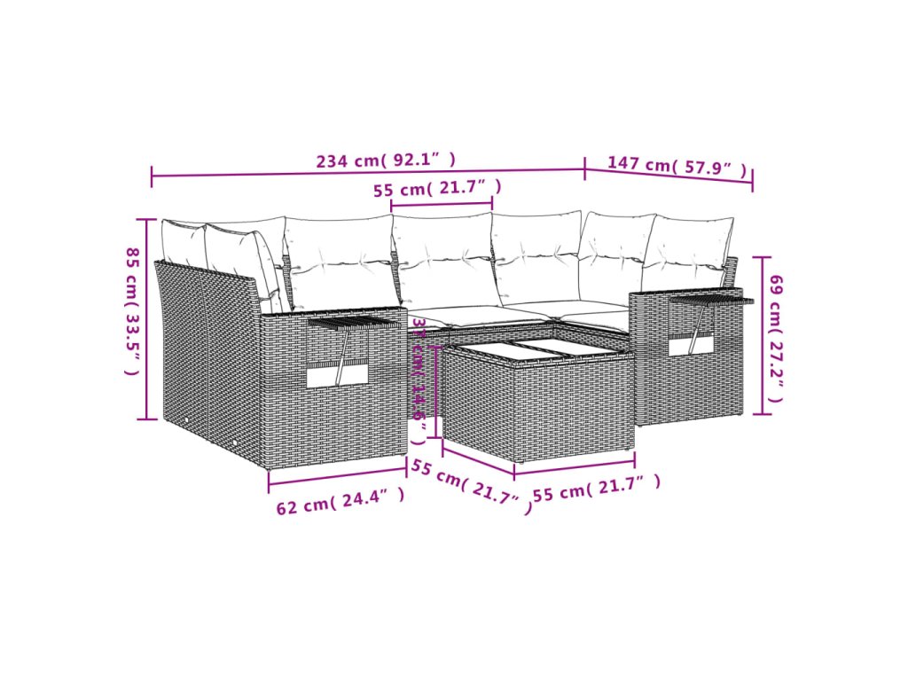 7dílná zahradní sedací souprava s poduškami šedá polyratan 3252257