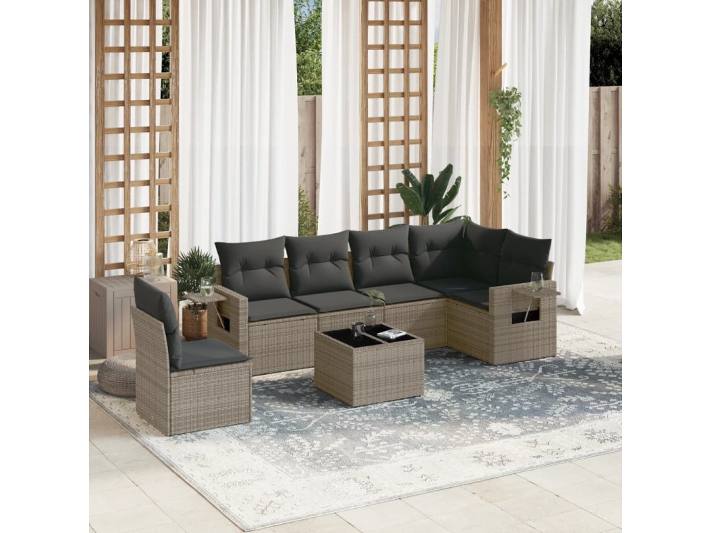 7dílná zahradní sedací souprava s poduškami šedá polyratan 3252577