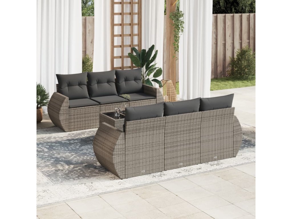 7dílná zahradní sedací souprava s poduškami šedá polyratan 3253447