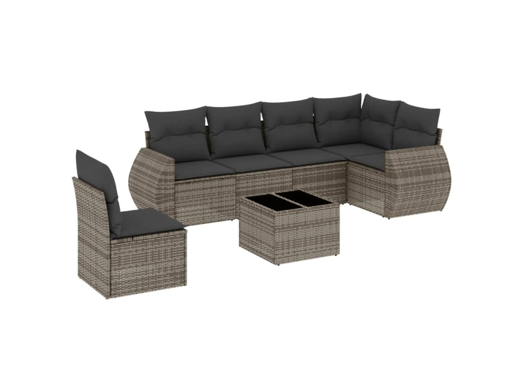7dílná zahradní sedací souprava s poduškami šedá polyratan 3253777