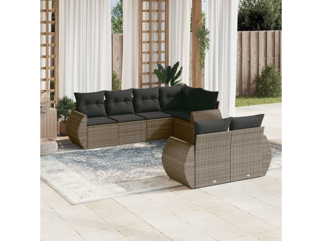 7dílná zahradní sedací souprava s poduškami šedá polyratan 3253947