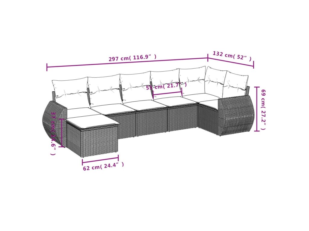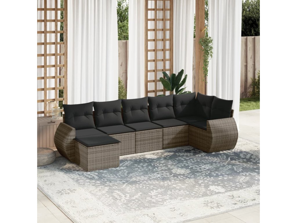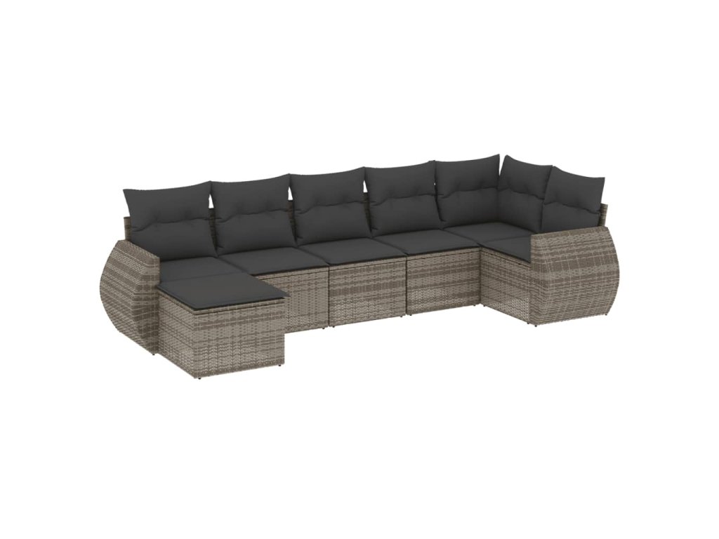 7dílná zahradní sedací souprava s poduškami šedá polyratan 3254017
