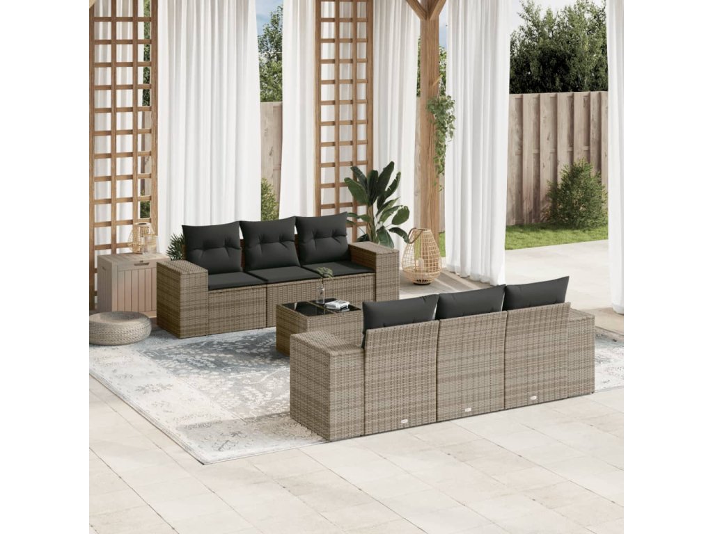 7dílná zahradní sedací souprava s poduškami šedá polyratan 3254647