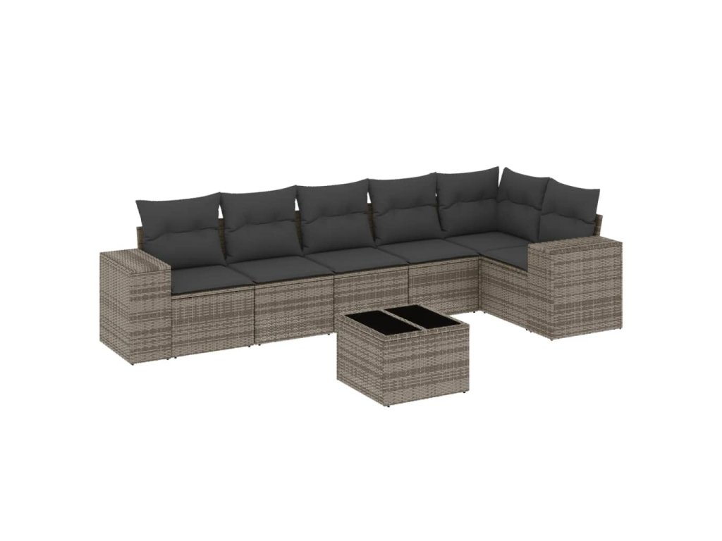 7dílná zahradní sedací souprava s poduškami šedá polyratan 3254937