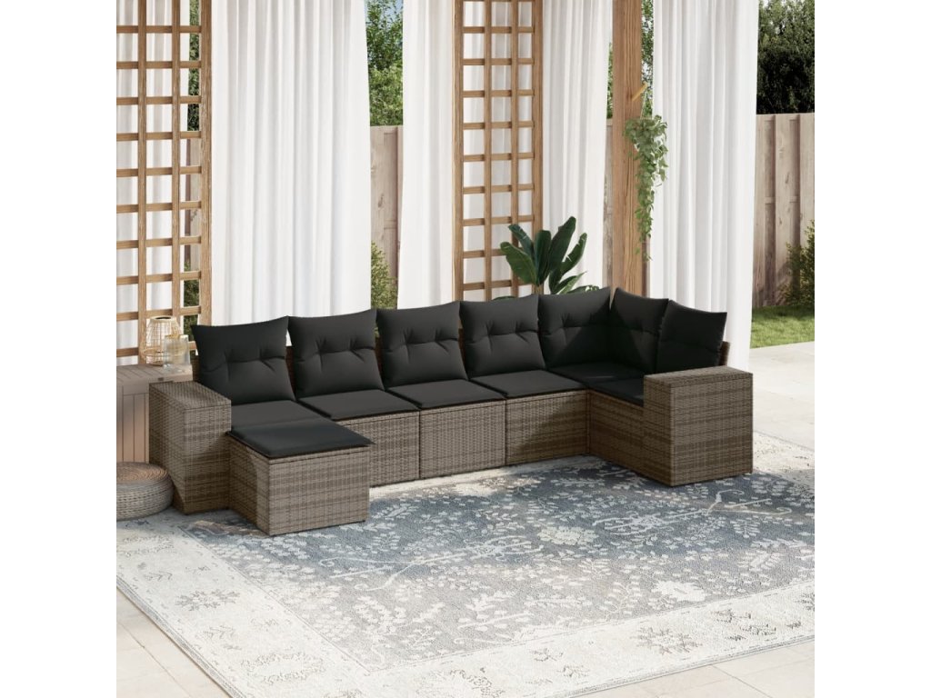 7dílná zahradní sedací souprava s poduškami šedá polyratan 3255217