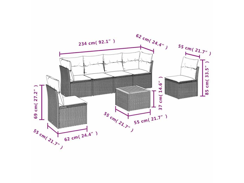 7dílná zahradní sedací souprava s poduškami šedá polyratan 3255886
