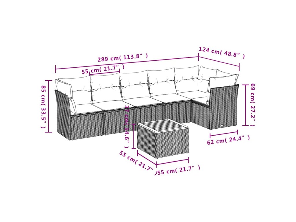 7dílná zahradní sedací souprava s poduškami šedá polyratan 3255984